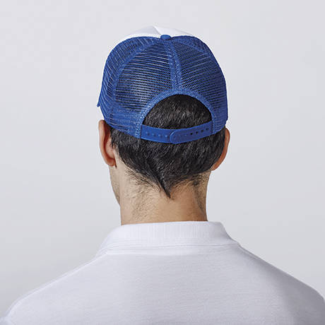 Gorra de estilo actual y moderna, con la copa en tejido de rejilla transpirable, cierre solapado de material plástico, cinta interior antisudoral. Cubrecosturas interiores del mismo tono que la prenda. Panel central en tejido especial para sublimación, visera a cuatro costuras y botón de adorno antioxidable.