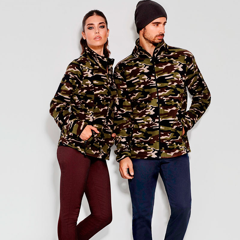 Chaqueta estilo polar para deporte al aire libre, con cuello alto y manga larga con ribetes en contraste. Cremallera central. Bolsillo con cremallera en manga izquierda y cremallera central, ambas en contraste. Costuras en lateral y de costadillo. Codera en el mismo tejido.