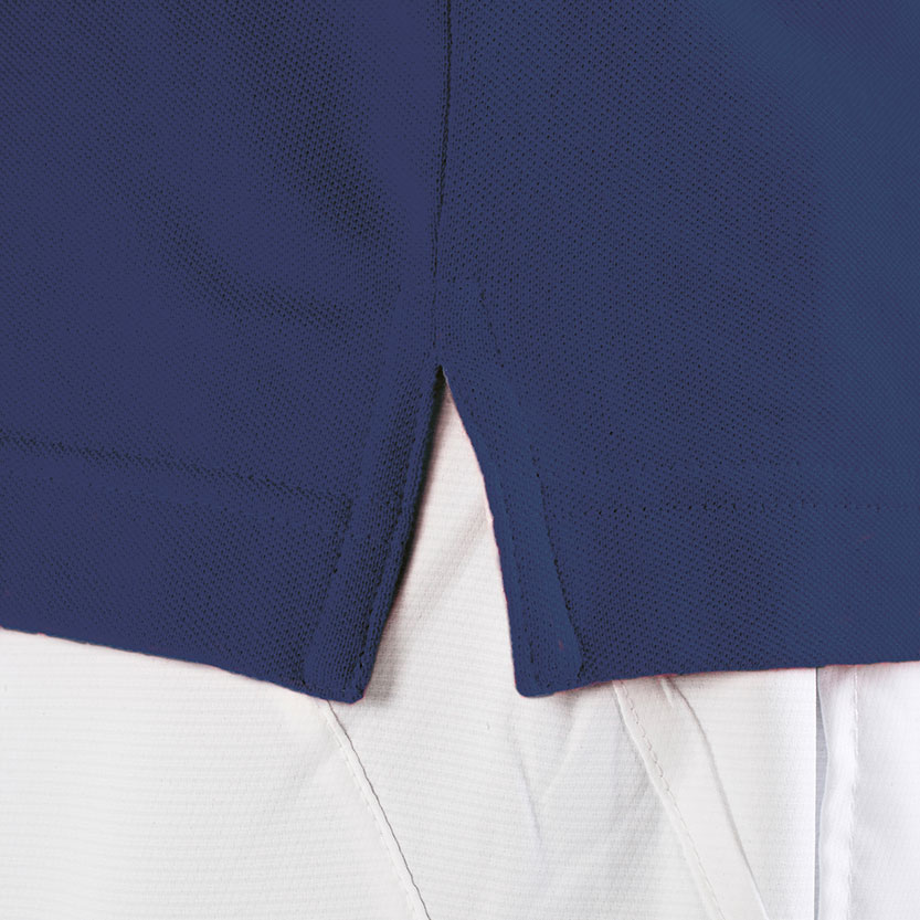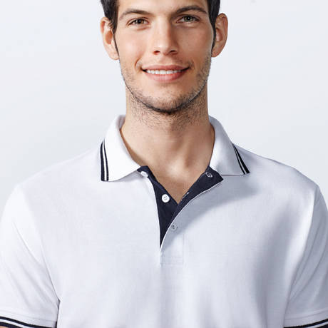 Polo de manga corta, cuello con tapeta de 3 botones a tono. Tapeta interior en contraste con tapeta exterior. Cuello y bocamangas acanalado, cubre costuras reforzado en cuello. Aperturas laterales.