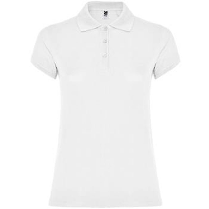 Polo de mujer de manga corta. Cubrecosturas reforzado en el interior para el cuello. Cuello y ribete de manga acanalado. Costuras laterales y corte ajustado. Tapeta fina con tres botones. Aperturas en los laterales del bajo. Corte entallado.